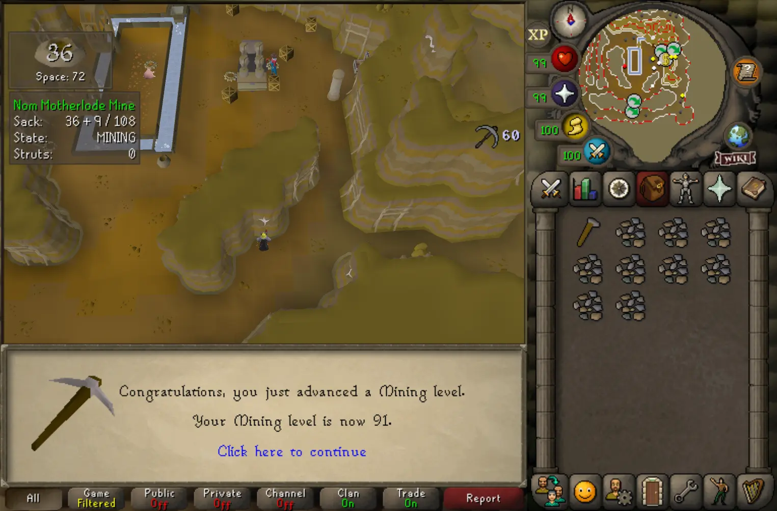 - 30 Mining to access Motherlode Mine and mine pay-dirt